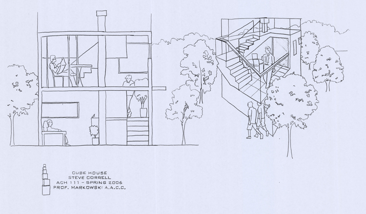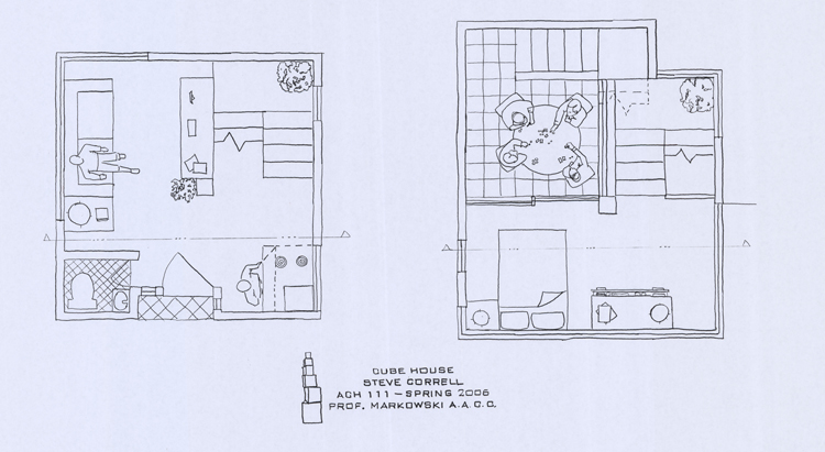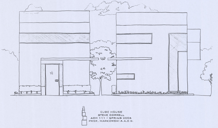 ACH 111 - Cube House Project Create a guest house that was equal height, length and width and present it with hand drafted drawings and model Concept: Villa Savoye Homage |