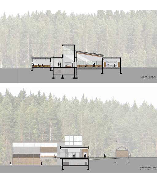 ARCH 600 - Dining Facilities Design a dining hall and conference space for a lumber education center in Finland Concept: Center of social life within larger camp context |